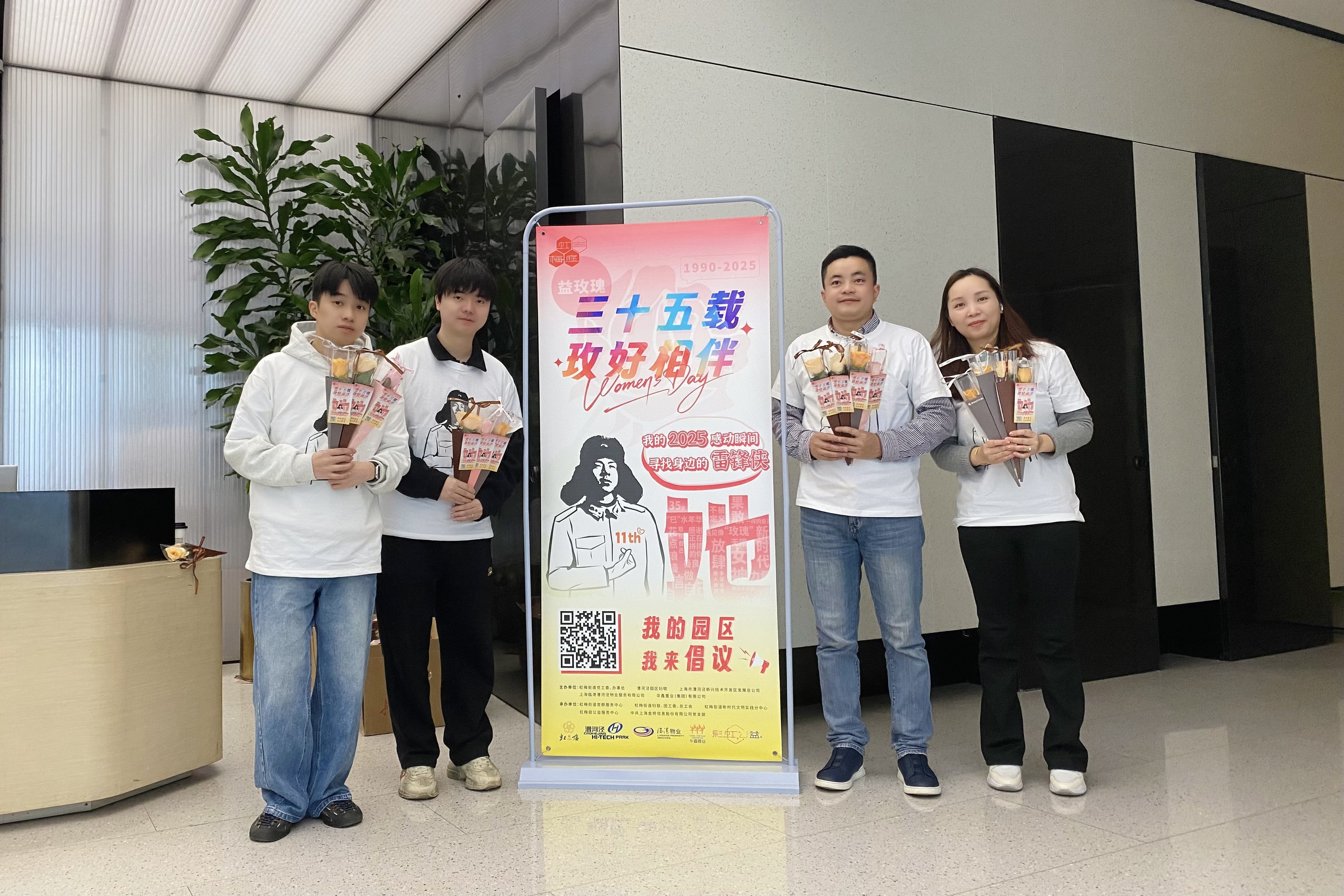 一大早,整個(gè)寶石園彌漫著(zhù)濃濃花香。黨員和志愿者們化身雷鋒俠為園區的女神們送上貼心的節日祝福,傳承雷鋒精神、贊揚女性力量。鮮花嬌艷欲滴,女神笑靨如花,感恩大家三十五載的玫好相伴。